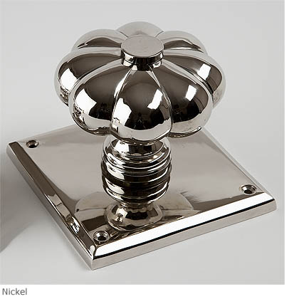 Fixed Front Door Knob, available with square or round backplate, supplied with threads and decorative nuts.
